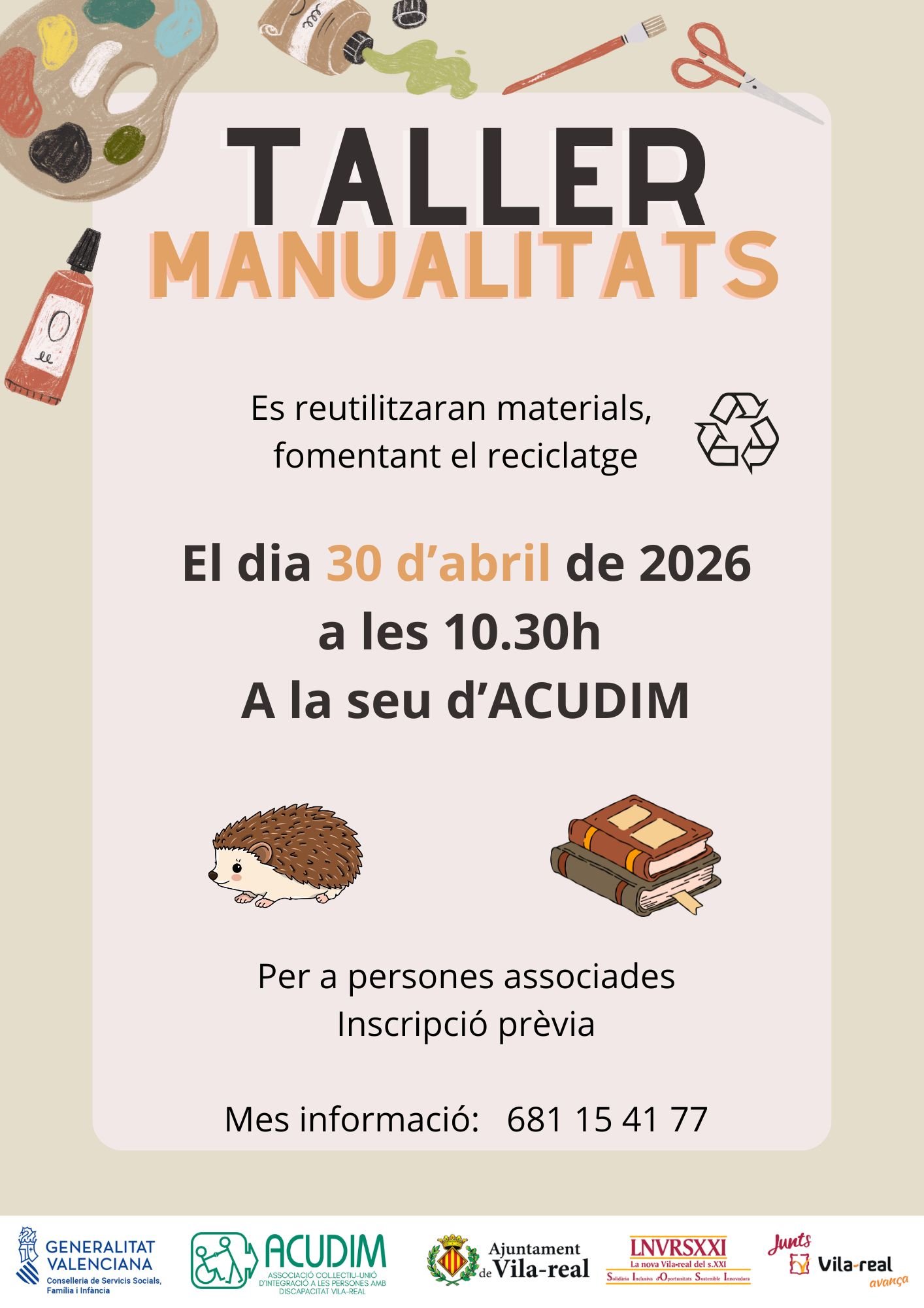 N O U TALLER: MÚSICA I BENESTAR. 🎼🥁🪈🪇 Els dies 17 d’abril, 8, 15, 22 i 29 de maig (divendres). En horari de 10.30 a 11.30 h, a la seu d’ACUDIM. Estàs preparat o preparada per a deixar-te portar per la música? 🥰🍃 Un viatge vivencial i especial que no et pots perdre! 😉 Més […]